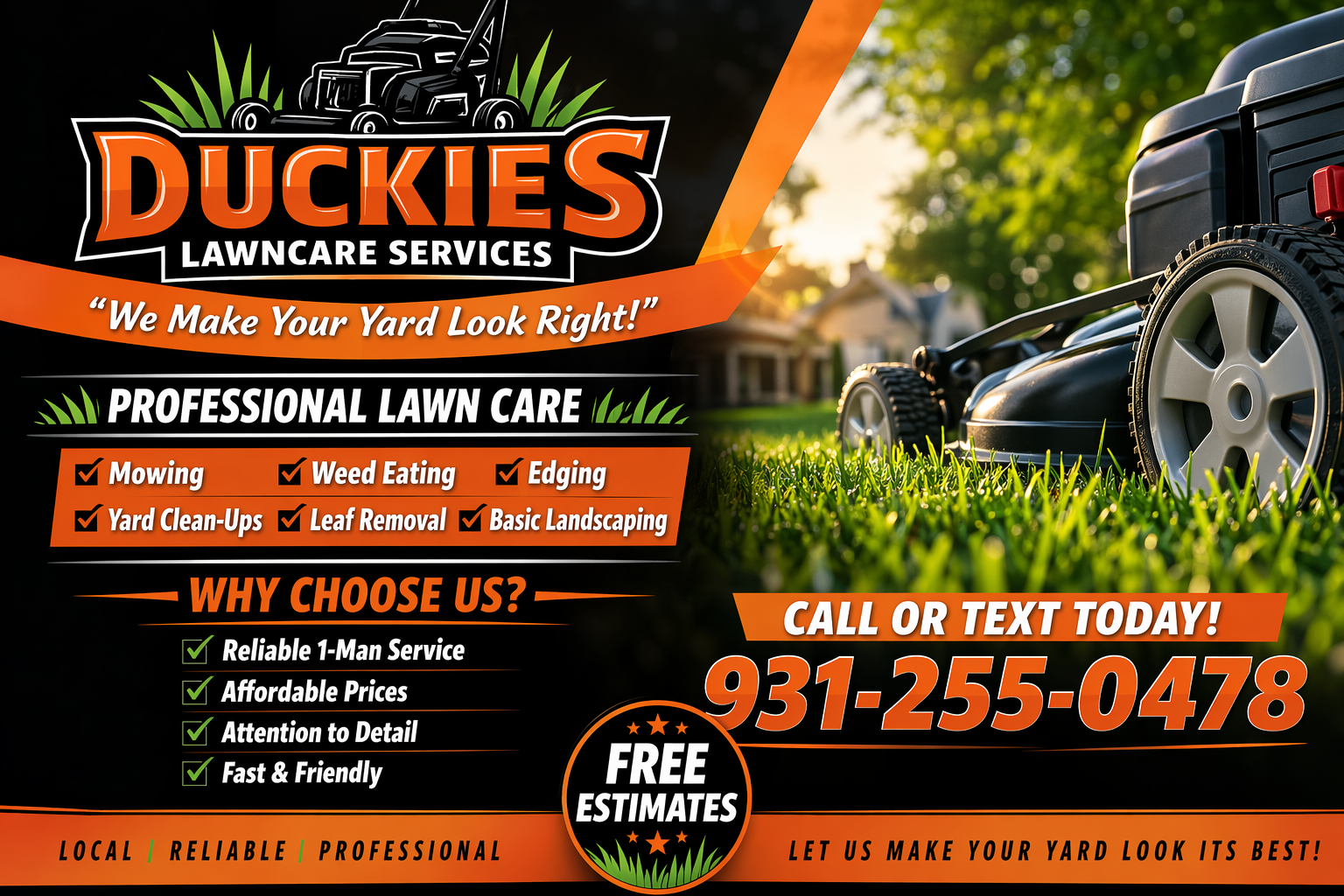 We are a locally owned and operated lawn care business dedicated to keeping your property looking its best. With a strong work ethic and attention to detail, we provide reliable mowing and lawn maintenance tailored to each yard. Our goal is simple - deliver quality results you can count on, every time.